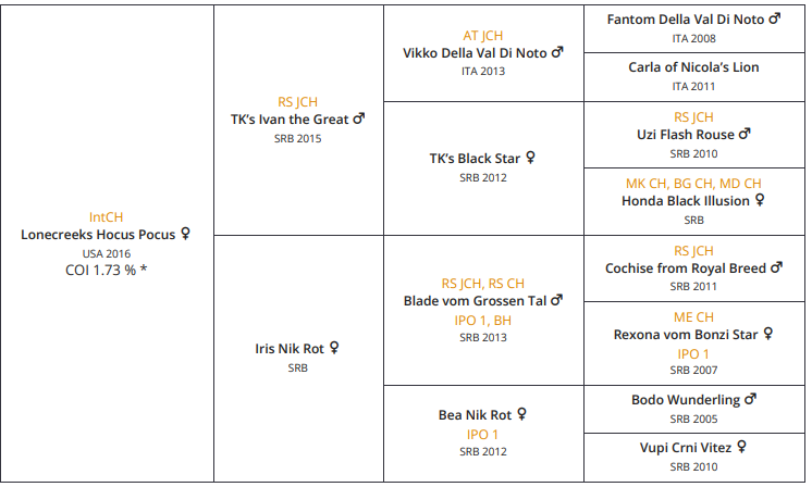 Rottweiler Pedigree for Lonecreek’s Hocus Pocus